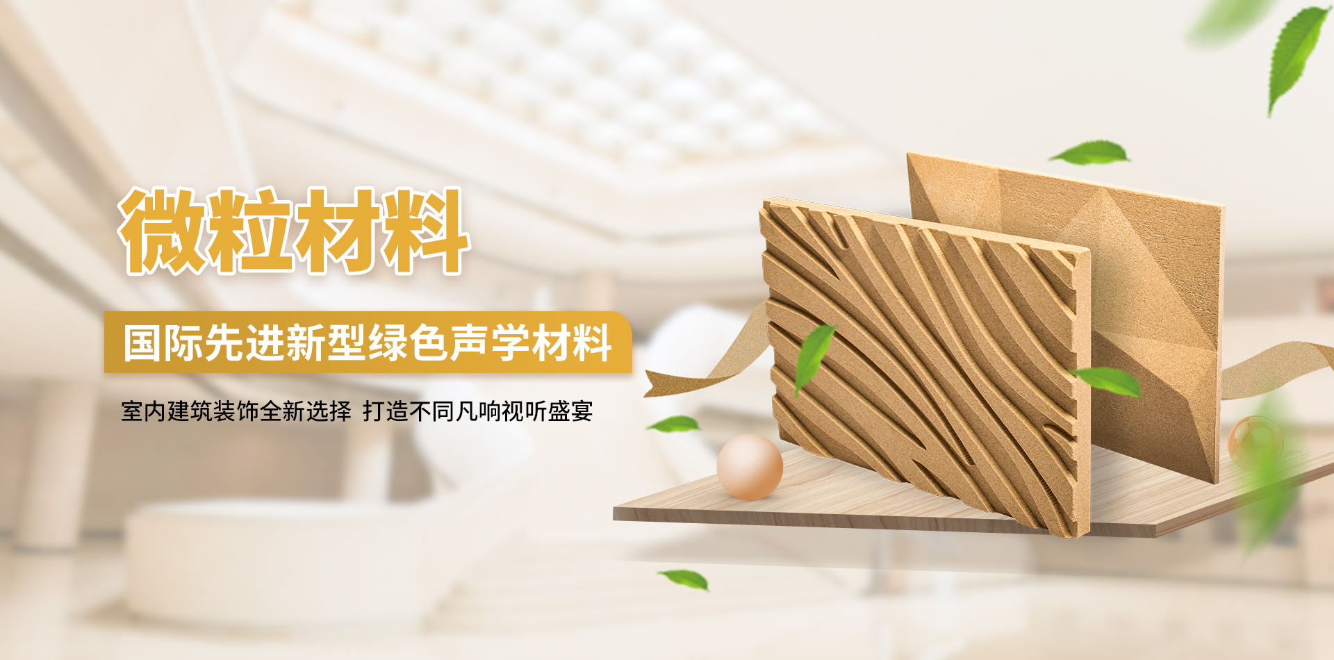 微粒材料是一種新型綠色裝飾材料,具備優(yōu)異的聲學性和物理性能。該材料是以天然砂粒或經環(huán)保處理的固廢顆粒為骨料,以環(huán)保膠凝劑,通過壓振工藝,生產的具有大量相互連通的微小空隙的多孔材料。
